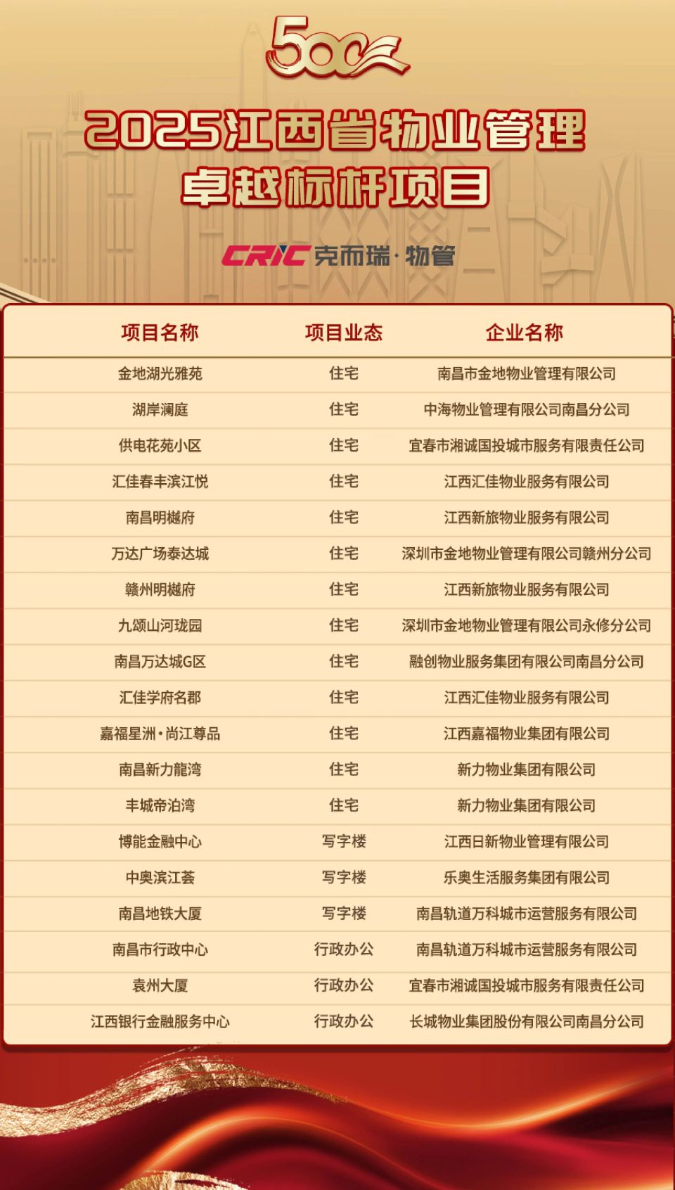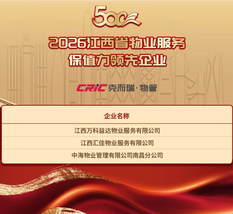企业定位:全国头部物业品牌驻赣核心平台,江西高端物业服务与智慧物业标杆企业,获评江西省物业服务五星级信用企业。